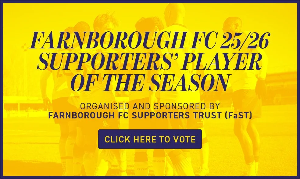 Supporters are now invited to cast their vote for the Farnborough Supporters' Player of the Season 2025/26 - organised and sponsored by Farnborough Supporters Trust (FaST).